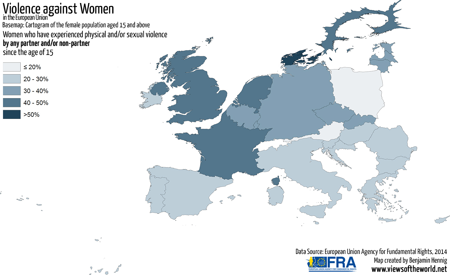 Con respecto a la violencia sexual, se estima que en España una mujer sufre una agresión sexual cada siete horas pues pobrecilla... Badum, Tss!, lo que podría considerarse una situación privilegiada en comparación con países como la India en el cual una mujer es violada cada 20 minutos.
